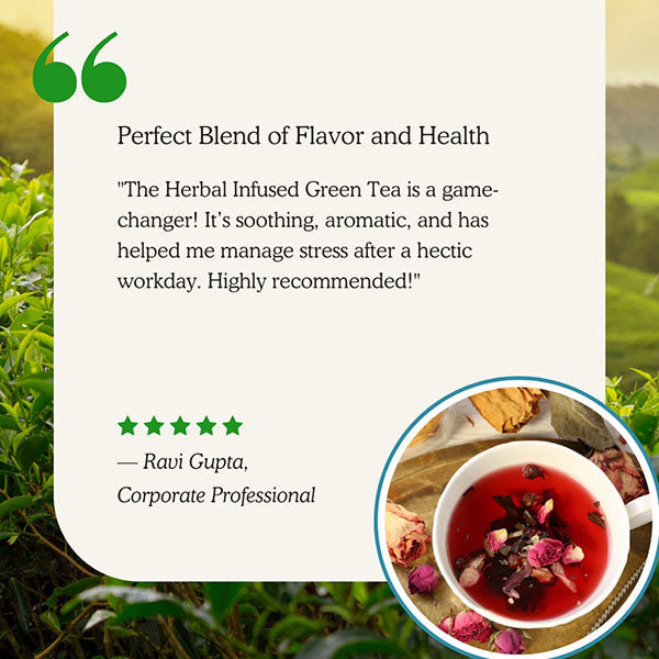 Our journey began with a mission: to blend the finest Ayurvedic herbs with premium green tea to create a tea experience that promotes well-being, vitality, and harmony.
