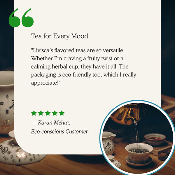 Livisca was born from a deep desire to offer more than just tea our mission is to offer wellness in every cup. With a passion for natural healing, we explored the finest tea gardens and selected premium Ayurvedic herbs to bring you a blend that calms the mind and nourishes the body.