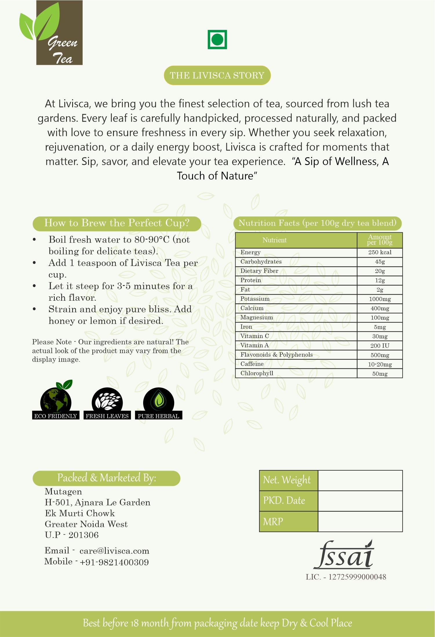 Green Tea Leaves – Smooth, antioxidant-rich base that supports metabolism and overall wellness